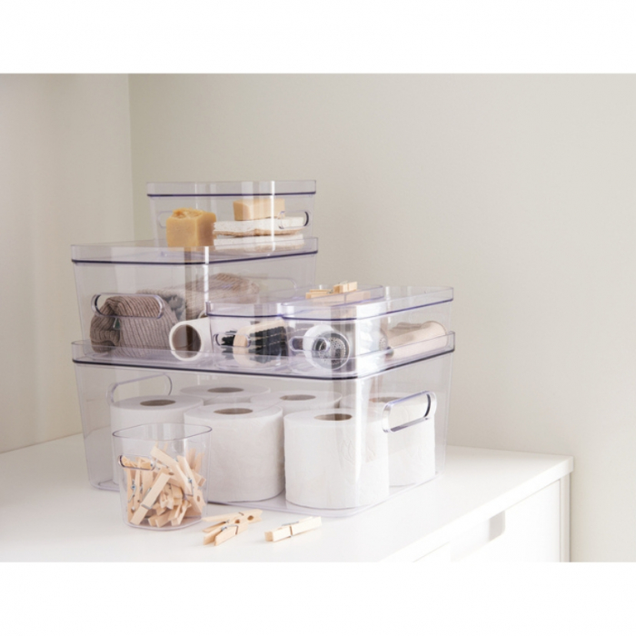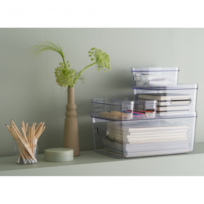 Fabricata in Finlanda, aceasta cutie de depozitare combina designul scandinav cu functionalitatea si transparenta pentru o experienta de organizare superioara.