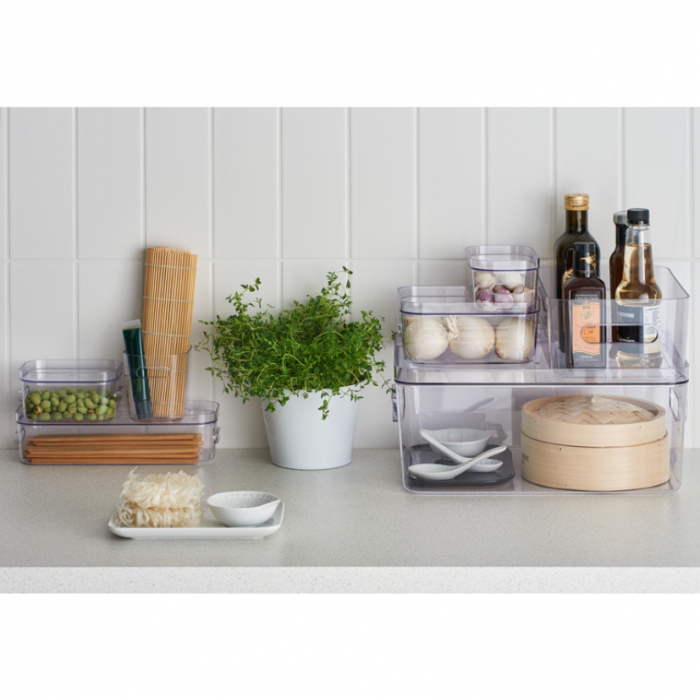 Cutie depozitare SmartStore Compact este solutia ideala pentru organizarea eficienta a alimentelor in frigider sau in bucatarie, precum si pentru aranjarea ordonata a produselor cosmetice in baie sau a rechizitelor in birou.